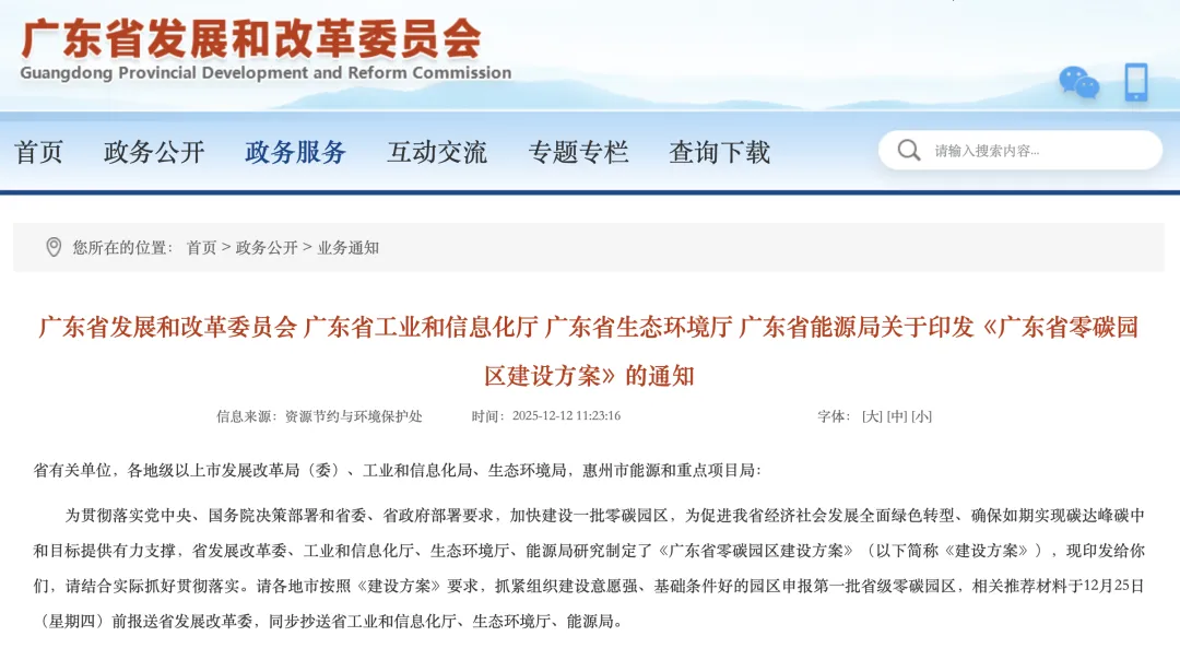 近日,广东省发展和改革委员会 广东省工业和信息化厅 广东省生态环境厅 广东省能源局联合印发了《广东省零碳园区建设方案》,同时组织建设意愿强、基础条件好的园区,申报第一批省级零碳园区,相关推荐材料于12月25日(星期四)前报送省发改委。